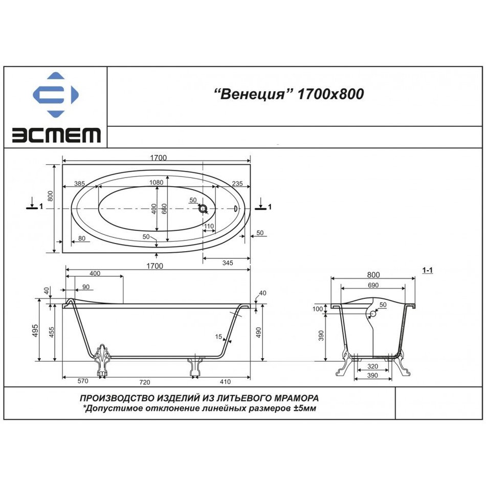 Ванна из искусственного камня Эстет Венеция 170 x 80, L/R