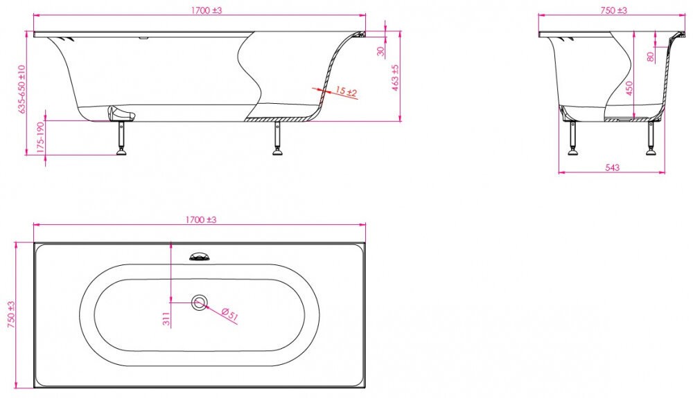 Ванна из литьевого мрамора Astra-Form Лира, 170 x 75 см, белый