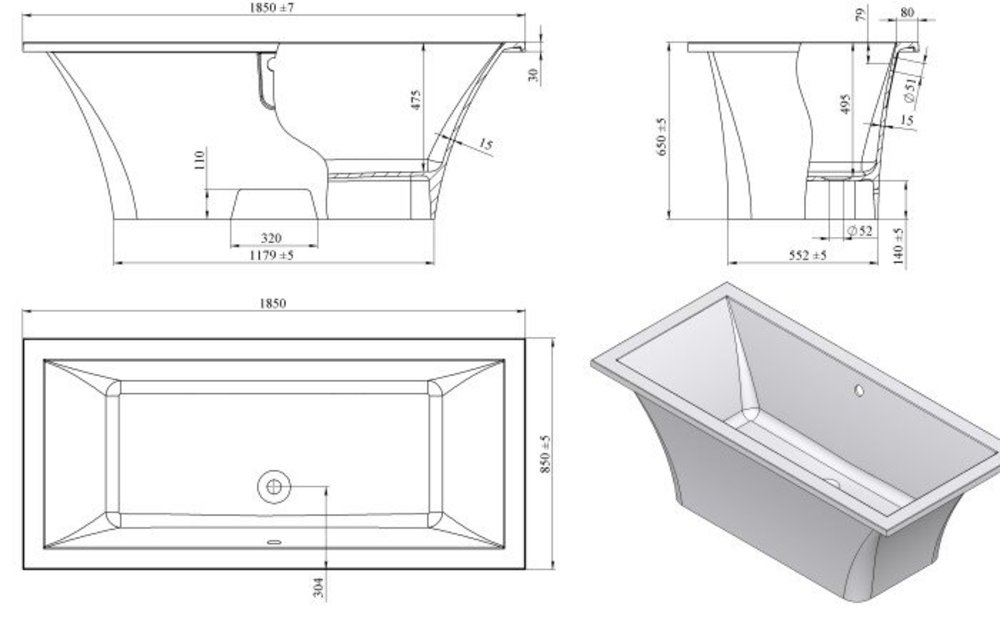 Ванна из литьевого мрамора Astra-Form Лотус 185 х 85 см, белый