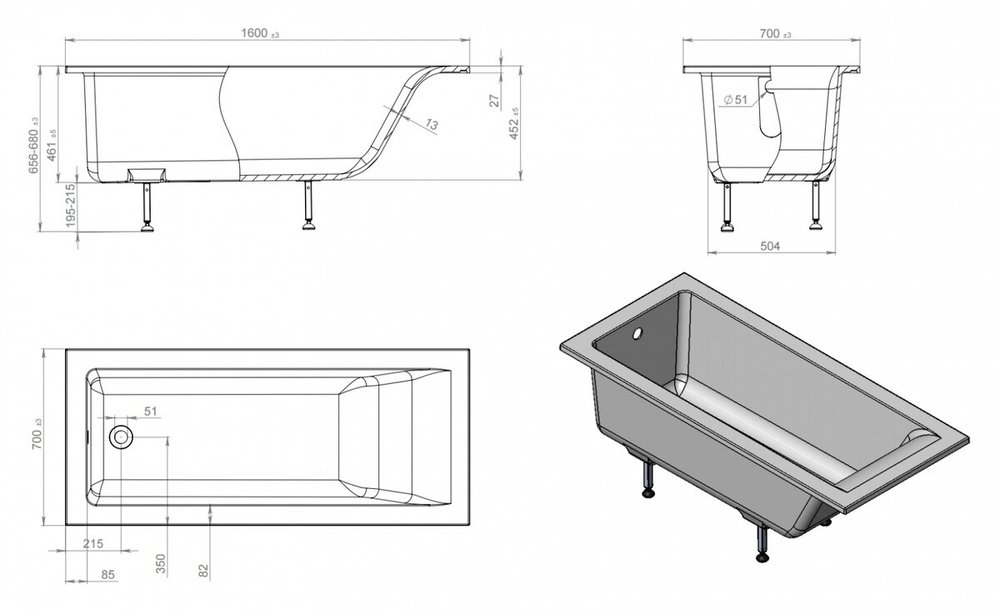 Ванна из литьевого мрамора Astra-Form Нейт 160 х 70 см, белый