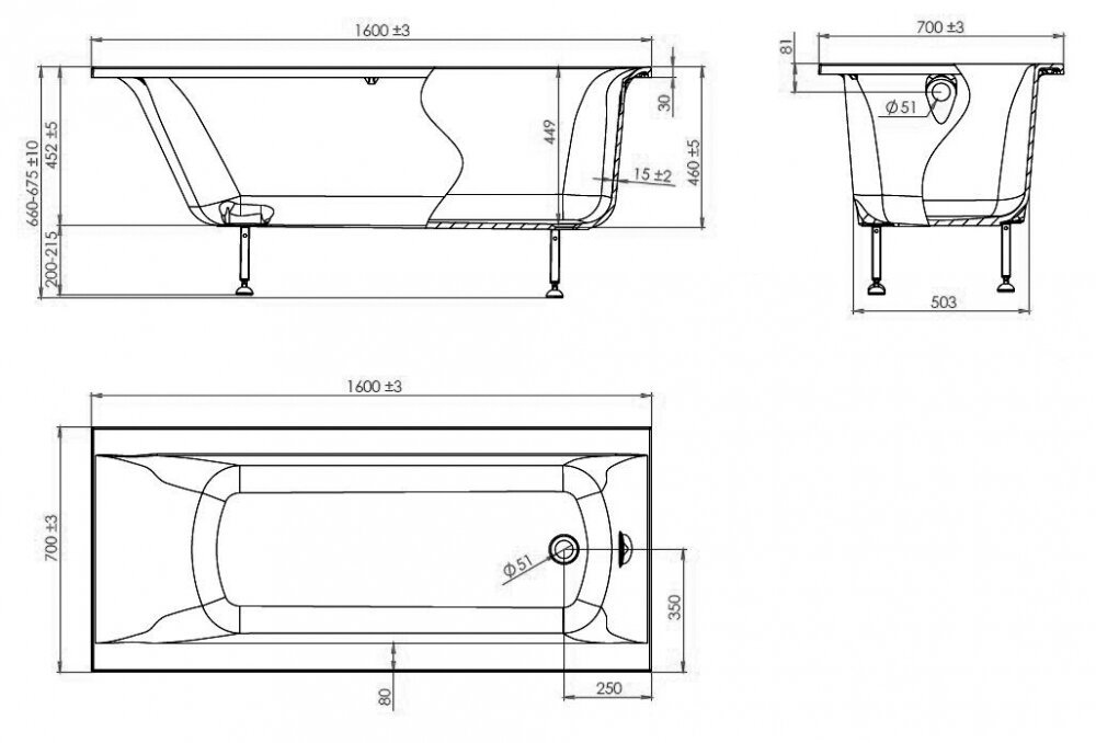 - Глубина ванны: 449 мм