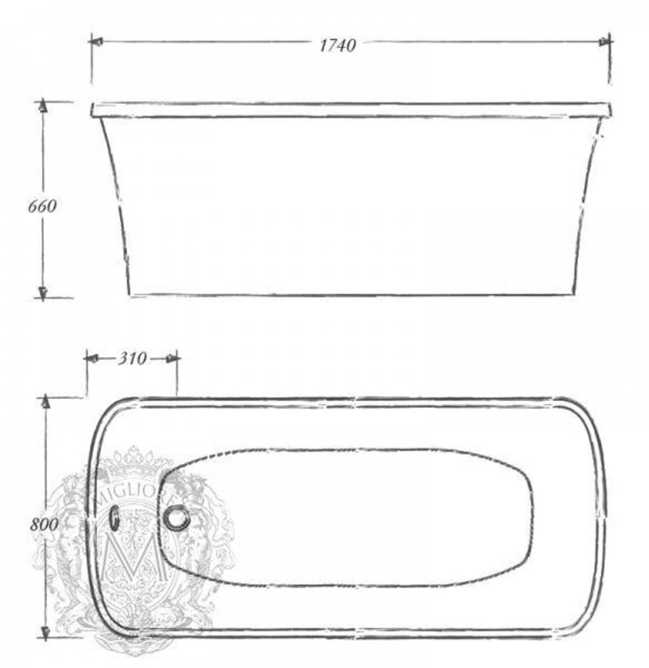 Ванна из литьевого мрамора Migliore OLIVIA 24631 на лапах Migliore, фурнитура хром, 174 х 80 х 66 см