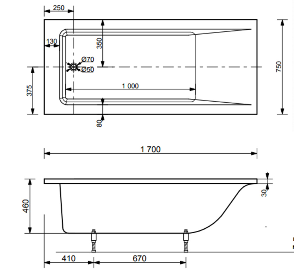 Ванна из литьевого мрамора Эстет Дельта 170В, 170 х 75 см