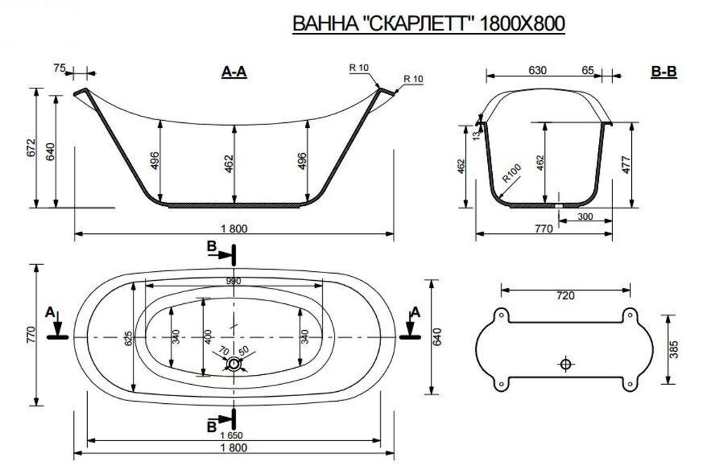 Ванна из литьевого мрамора Эстет Скарлетт, 180 х 77 см (ФР-00001245)
