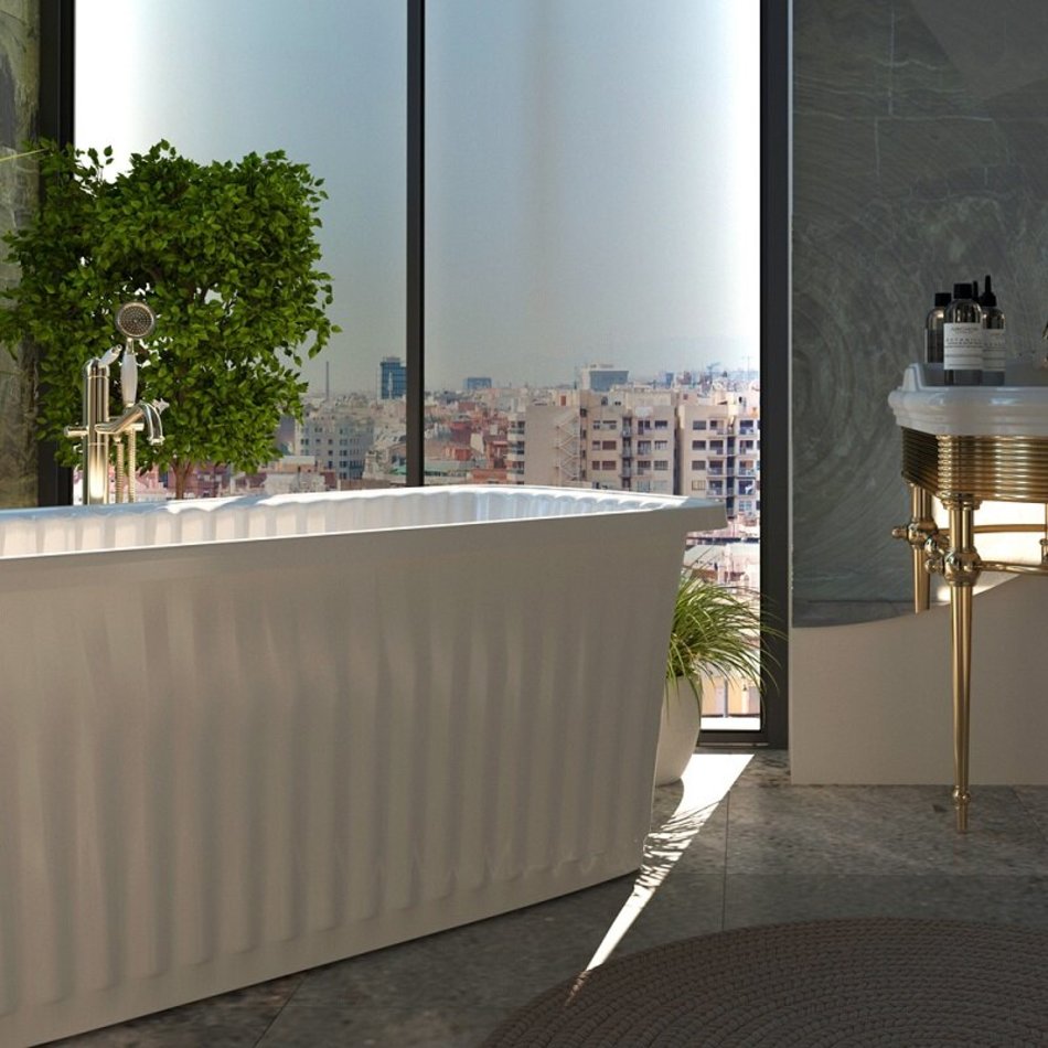 Ванна Migliore Olivia Panello, 174 х 80 х 66 см, из литьевого мрамора, фурнитура бронза, панель белая глянцевая, 24361