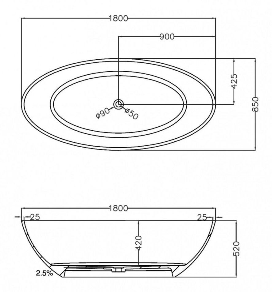 Ванна прозрачная Abber Kristall 180 x 85 см отдельностоящая, коричневый, AT9702Opal