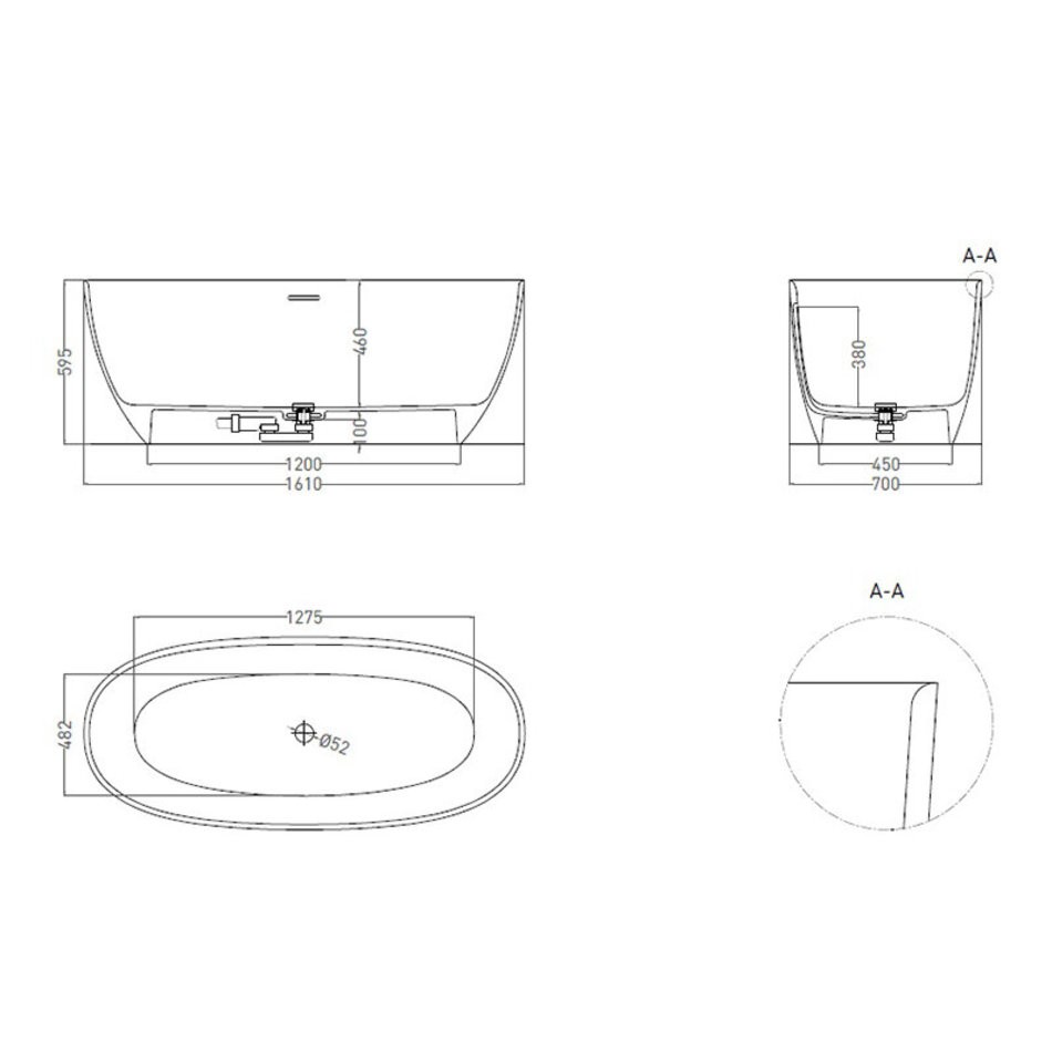 Ванна Salini Alda, 160 х 70 см, из искусственного камня S-Sense, белый глянцевый, 101914G