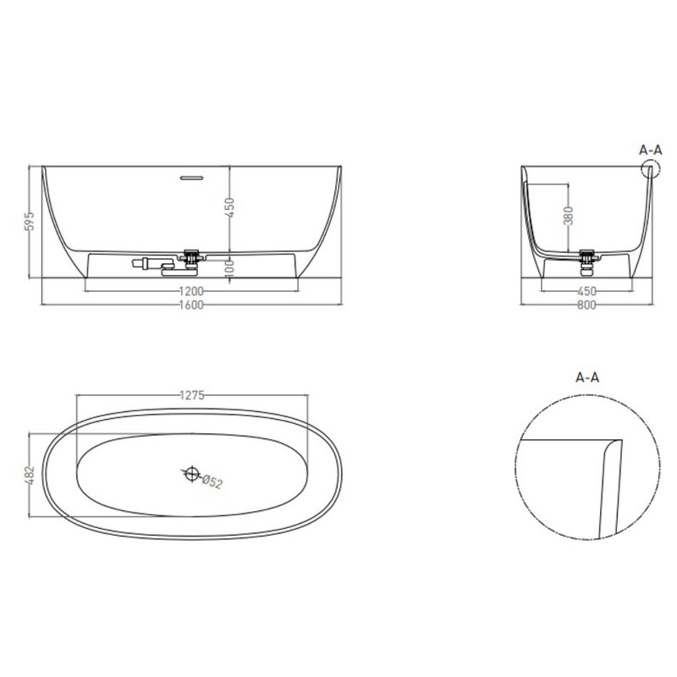 Ванна Salini Alda, 160 х 80 см, из искусственного камня S-Sense, белый глянцевый, покраска по RAL снаружи, 101913GRH