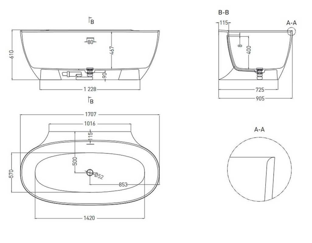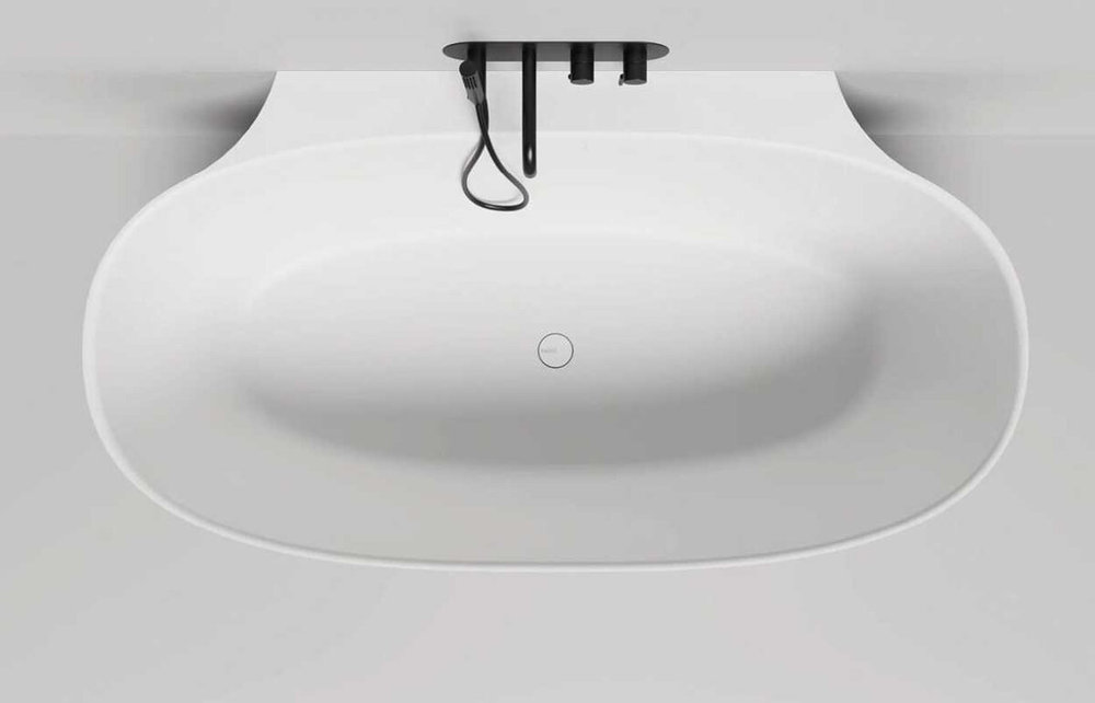 Эта модель соединяет в себе классическую овальную форму изголовий и спрятанный за ними пристенный борт. Благодаря такой конструкции создаётся впечатление отдельностоящей ванны, но сохраняется практичность плотного примыкания к стене и дополнительной поверхности для хранения косметических средств и аксессуаров. При желании здесь также можно разместить и смеситель.
