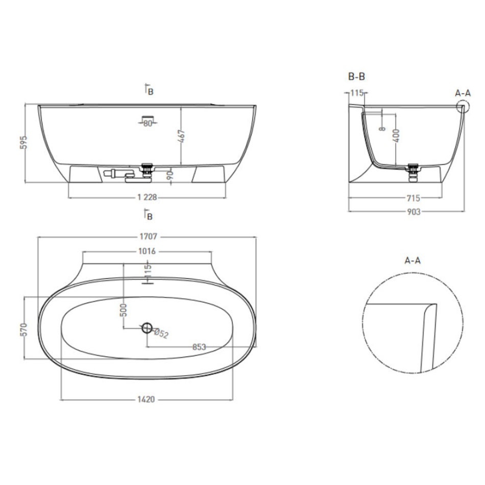 Эта модель соединяет в себе классическую овальную форму изголовий и спрятанный за ними пристенный борт. Благодаря такой конструкции создаётся впечатление отдельностоящей ванны, но сохраняется практичность плотного примыкания к стене и дополнительной поверхности для хранения косметических средств и аксессуаров. При желании здесь также можно разместить и смеситель.