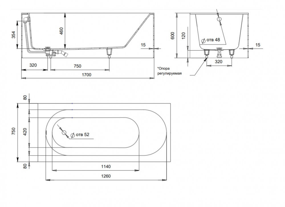 Ванна Salini Fabia 170 х 75 х 60 см, из искусственного камня S-Sense, белый глянцевый, 102611G
