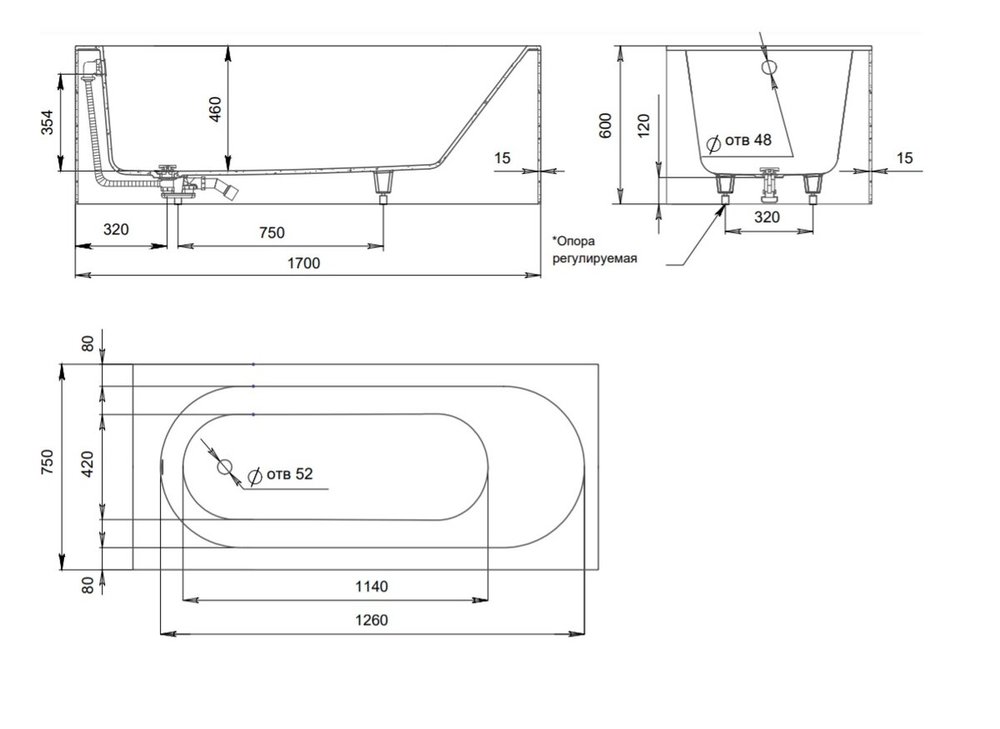 Ванна Salini Fabia 170 х 75 х 60 см, из искусственного камня S-Sense, белый матовый, 102611M