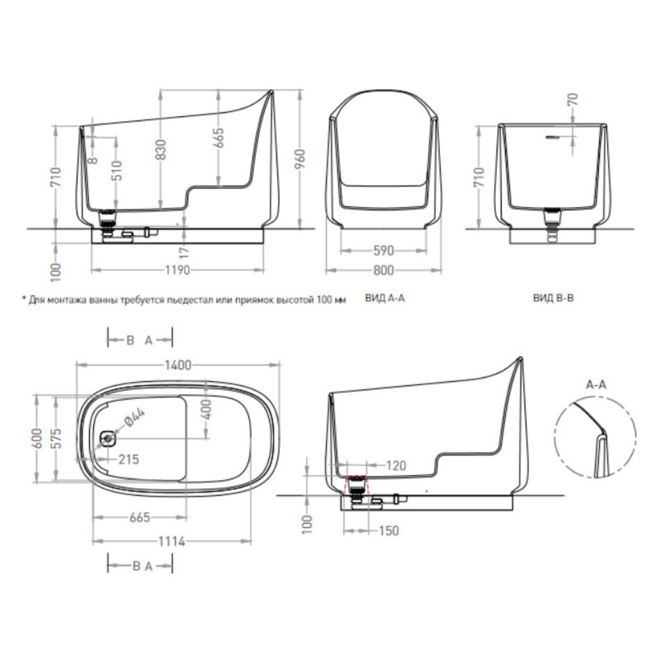 - Комплектация Ванна, интегрированный слив-перелив, донный клапан D 403 Up&Down, сифон (гофротруба в комплекте)