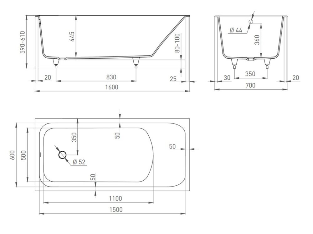 Ванна Salini Orlando 160 х 70 х 60 см, из искусственного камня S-Stone, белый матовый, 102025M