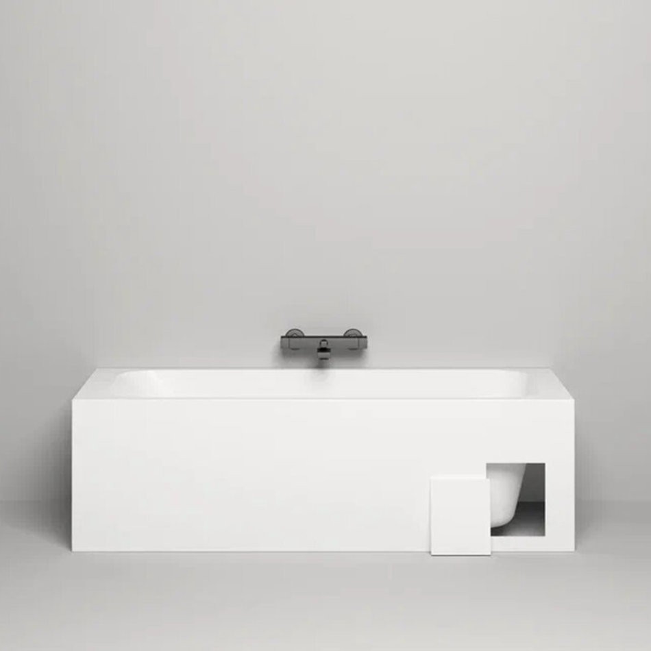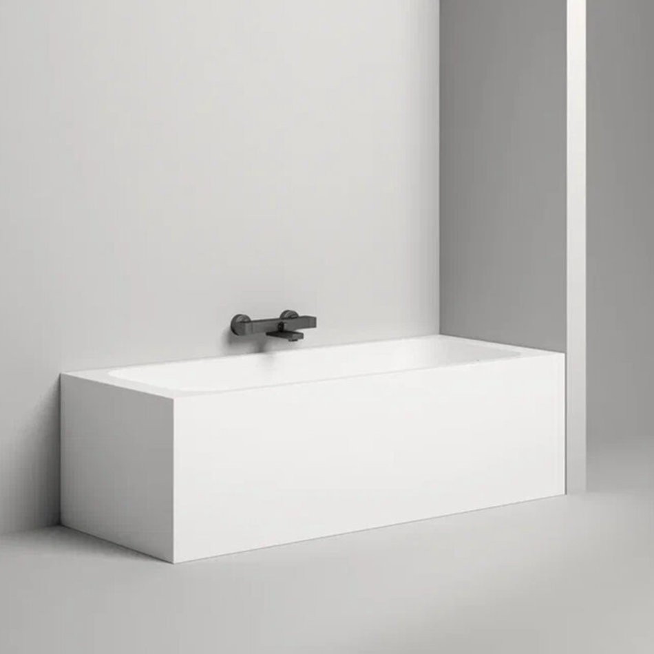 Классическая встраиваемая ванна с прямоугольной чашей. Её выбирают для небольших ванных комнат или истинные приверженцы консервативного стиля в интерьерах. Ванну можно дополнить минималистичными литыми экранами и обрезать специально для нестандартных скошенных углов.