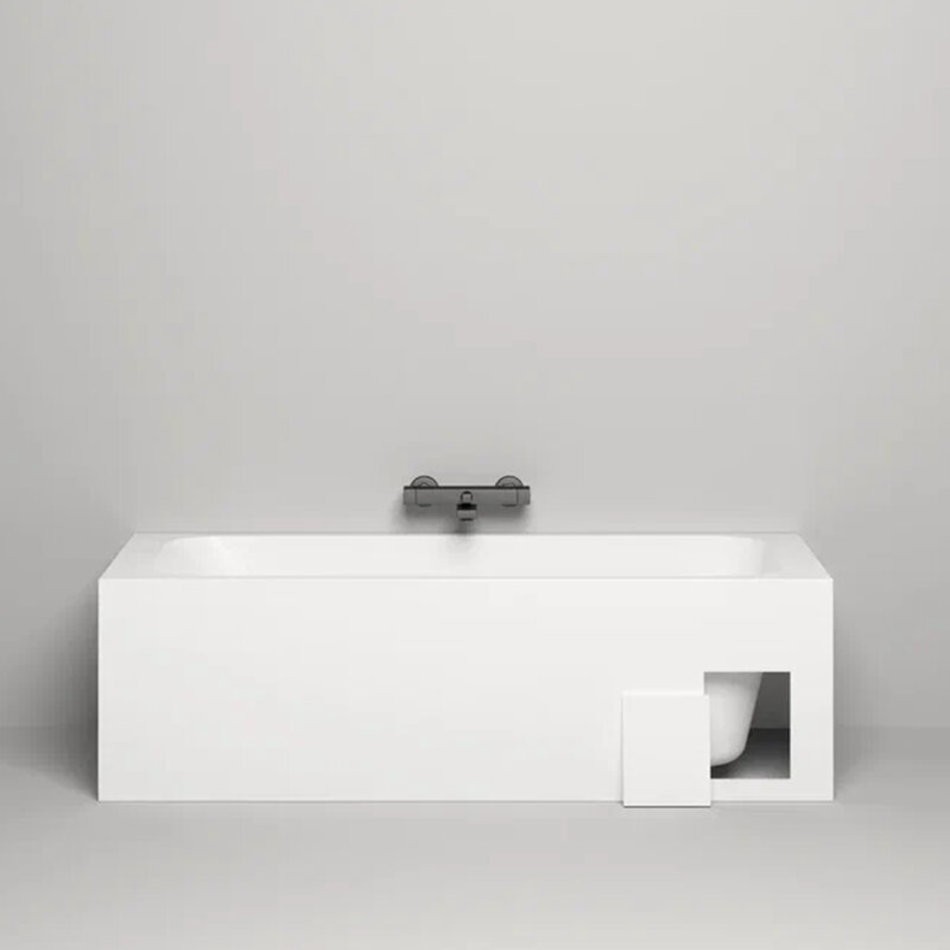 Классическая встраиваемая ванна с прямоугольной чашей. Её выбирают для небольших ванных комнат или истинные приверженцы консервативного стиля в интерьерах. Ванну можно дополнить минималистичными литыми экранами и обрезать специально для нестандартных скошенных углов.
