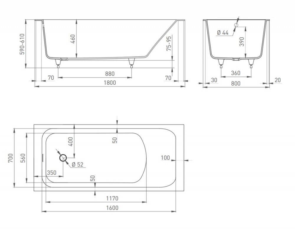 Ванна Salini Orlando 180 x 80 х 61 см, из искусственного камня S-Sense, белый глянцевый, 102012G