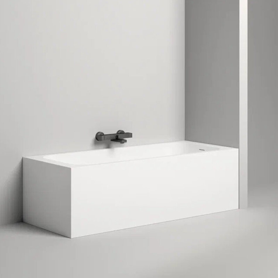 Классическая встраиваемая ванна с прямоугольной чашей. Её выбирают для небольших ванных комнат или истинные приверженцы консервативного стиля в интерьерах. Ванну можно дополнить минималистичными литыми экранами и обрезать специально для нестандартных скошенных углов.