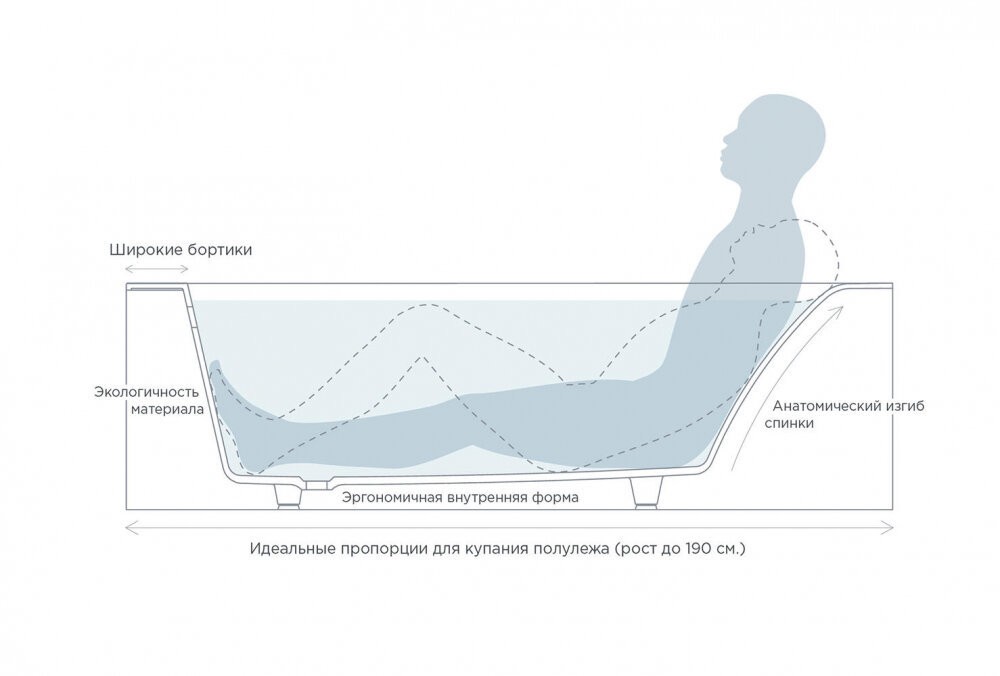 Ванна Salini Orlanda Kit 180 x 80 х 60 см, из искусственного камня S-Sense, белый глянцевый, 102112G