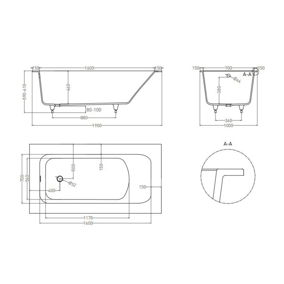 - Комплектация: ванна, регулируемые ножки до 2 см