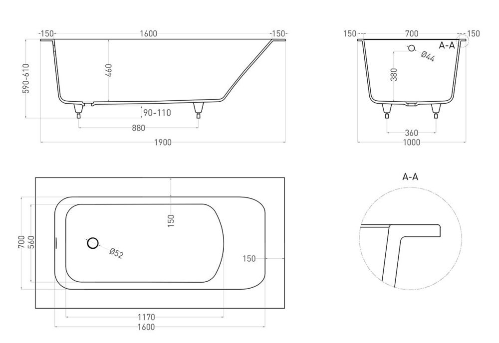 Ванна с широкими бортиками от 3,5 до 15 см. Широкие борта ванны несут в себе не только практичный функционал поверхности для ванных принадлежностей, но и позволяют скорректировать ширину и длину модели под индивидуальные размеры заказчика в диапазоне от 35 до 150 мм по каждой из 4 сторон. Ванны ORLANDA PLUS созданы специально для Ваших индивидуальных архитектурных решений. Благодаря эргономичной внутренней форме и анатомическому изгибу спинки, данная модель принесет максимальный комфорт для людей ростом до 190 см. Размеры: 1900 х 1000 х 590/610 мм