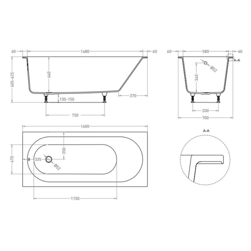 Ванна Salini Ornella 102316MRF, 160 х 70 см, из искусственного камня S-Sense, белый матовый, покраска по RAL полностью