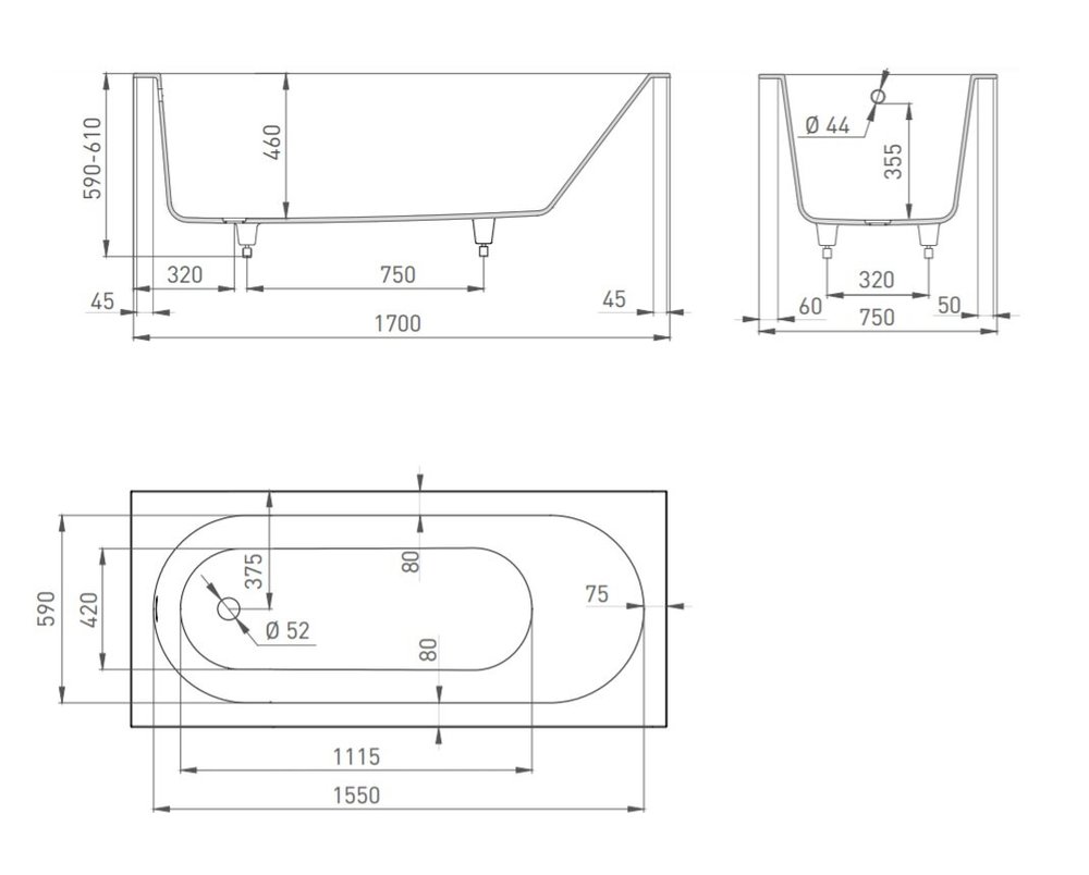 - Размер: 170 x 75 х 59/61 см