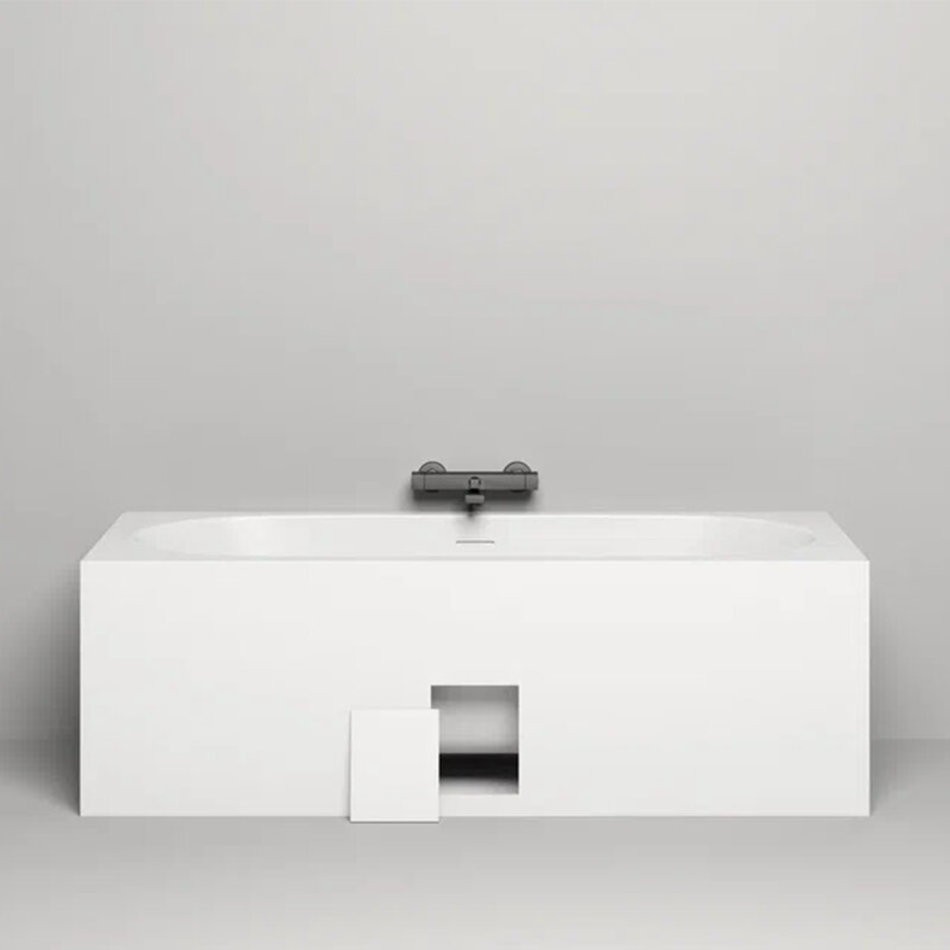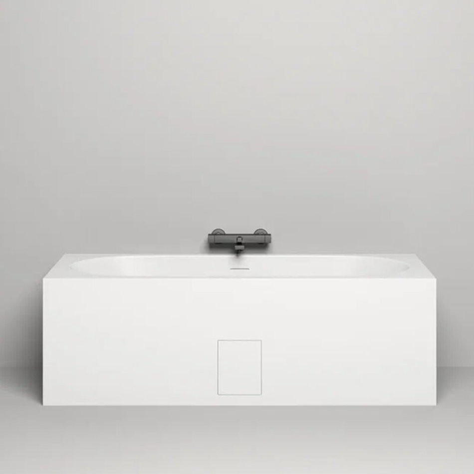 Помимо установки на пол, ванна может быть полностью или частично встроена в пол или подиум. В последнем случае, ванна также оснащается декоративными экранами, высота которых адаптируется по запросу. Ванна может быть дополнена ревизионным люком, вырезанным во фронтальном экране для доступа к сифону. Люк с тонким контуром, находящийся в одной плоскости с экраном, гарантирует безупречную эстетику этой лаконичной модели. Таким образом, одна и та же универсальная модель от Salini способна обладать параметрами, соответствующими персональному запросу, встраивается в любое предназначенное для нее пространство и удовлетворяет всем критериям современного качества жизни.