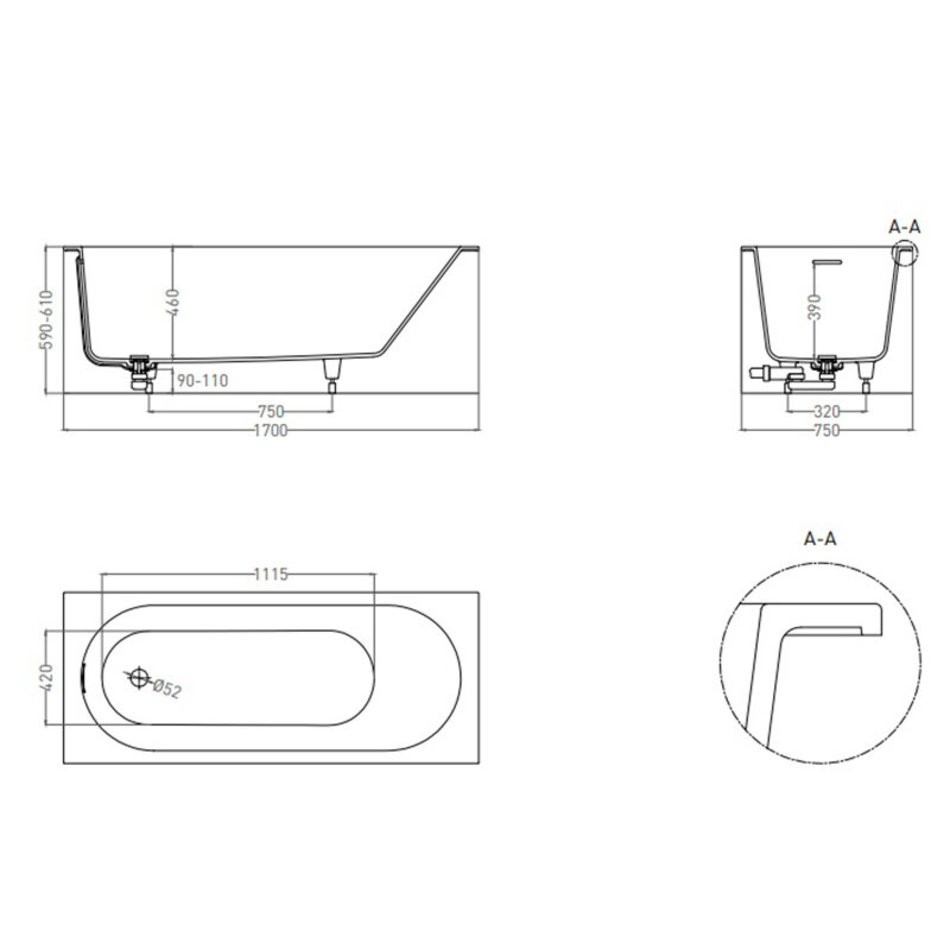 - Размер: 170 x 75 х 59/61 см