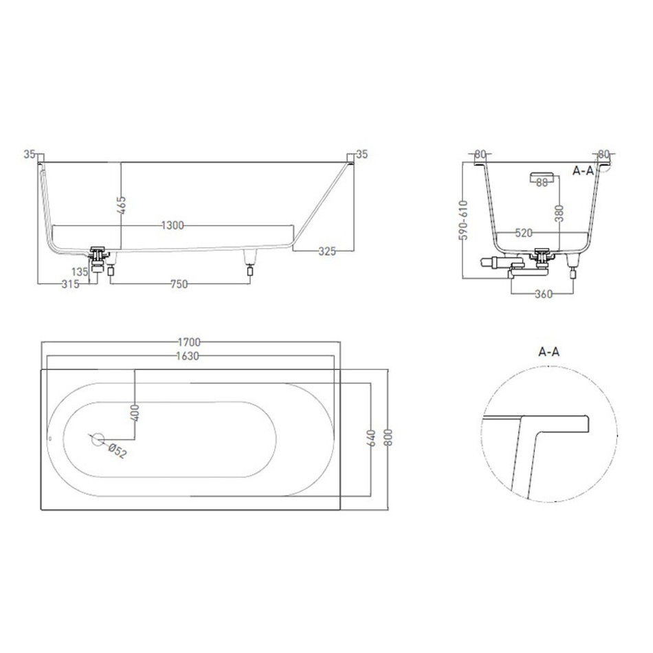 ORNELLA КIТ - это встраиваемая ванна с овальной округлой чашей, которая идеально вписывается в пространство от стены до стены в ванных комнатах небольших размеров.