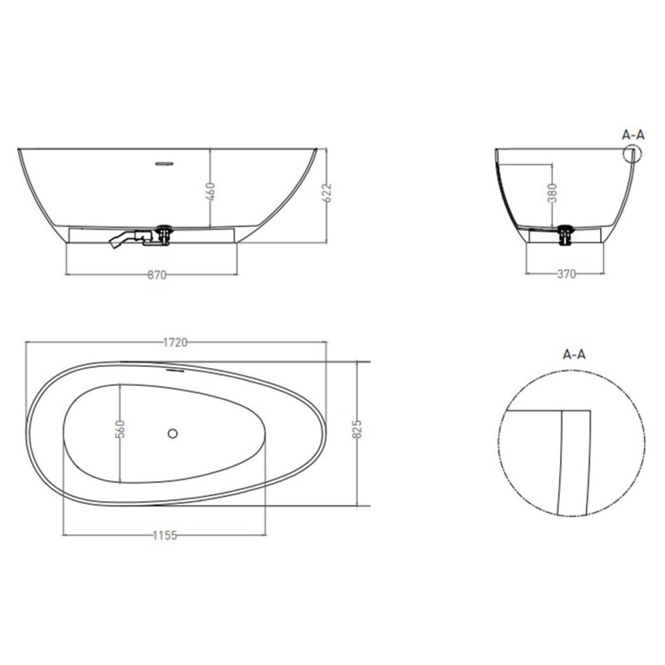 Ванна Salini Paola 172 х 82 см, из искусственного камня S-Stone, белый матовый, покраска по RAL снаружи, 101512SMRH