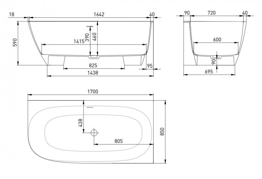 Ванна Salini Sofia Corner 170 x 85 см, цвет глянцевый, покраска снаружи, левый/правый