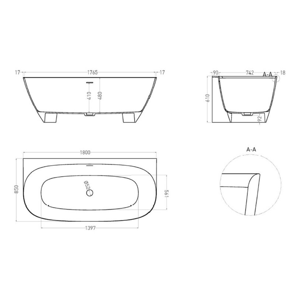 Ванна Salini Sofia Wall 180 х 85 см, из искусственного камня S-Sense, белый глянцевый, покраска по RAL снаружи, 102513GRH