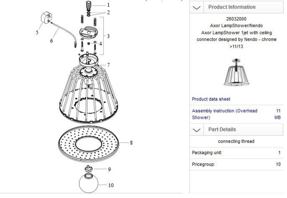 Верхний душ Axor LampShower/Nendo 26032000, 27,5x27,5 см, 1 режим струи, с держателем