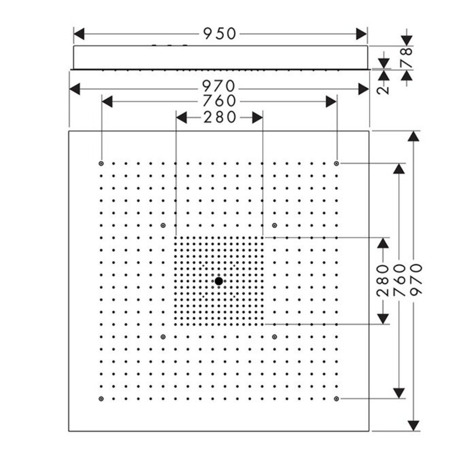 Верхний душ Axor Shower Collection 10621800, 97x97 см, 3 режима струи