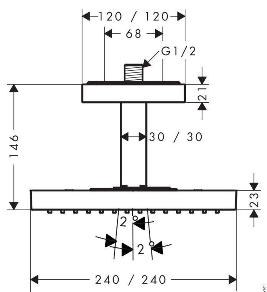 Верхний душ Axor ShowerCollection 10929000, 24 x 24 см, 1 режим струи, с держателем