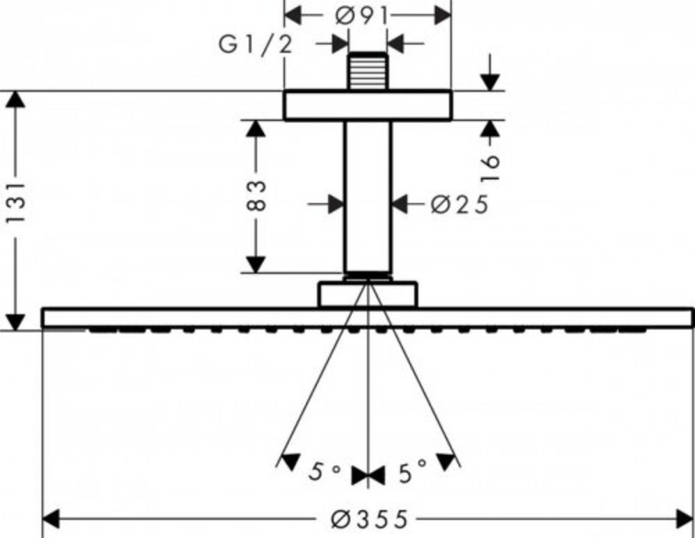 Верхний душ Axor ShowerSolutions 26035000, 35,5x35,5 см,1 режим струи, с держателем, хром
