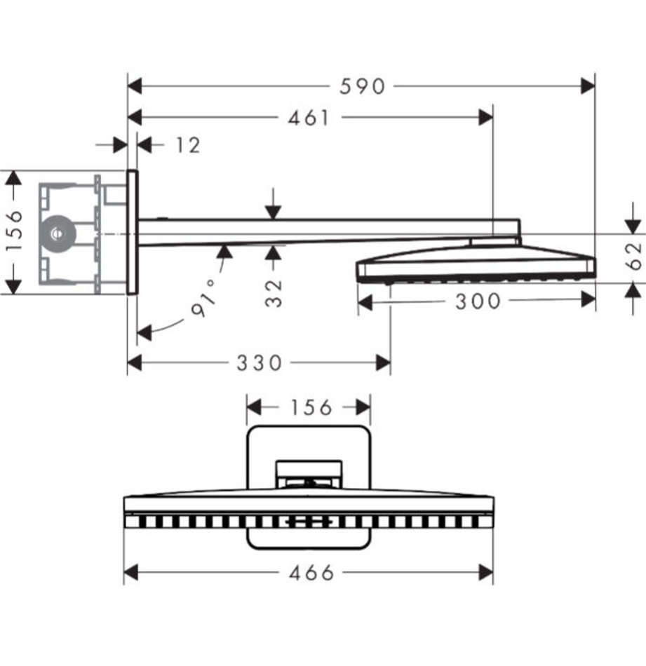 Верхний душ Axor ShowerSolutions 35276000, 46 х 27 см, 3 режима струи, с держателем
