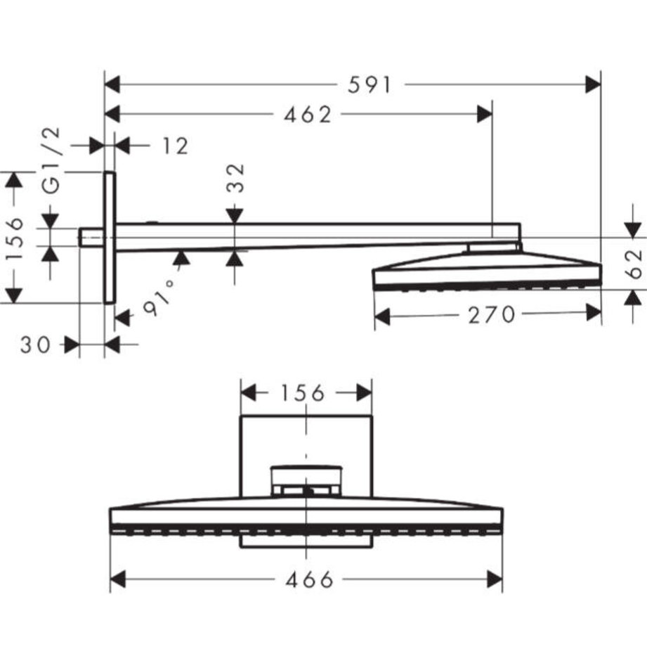 Верхний душ Axor ShowerSolutions 35278000, 46 х 27 см, 1 режим струи, с держателем