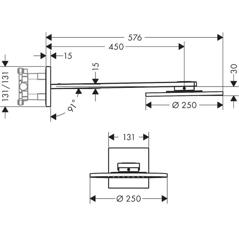 Верхний душ Axor ShowerSolutions 2 типа струи, 25 х 25 см, с держателем, хром, 35296000