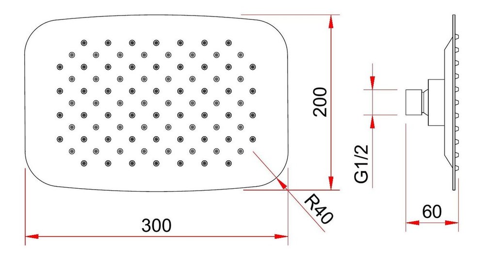 Верхний душ Berges Ventas 074006 O, 30 x 20 см, черный матовый