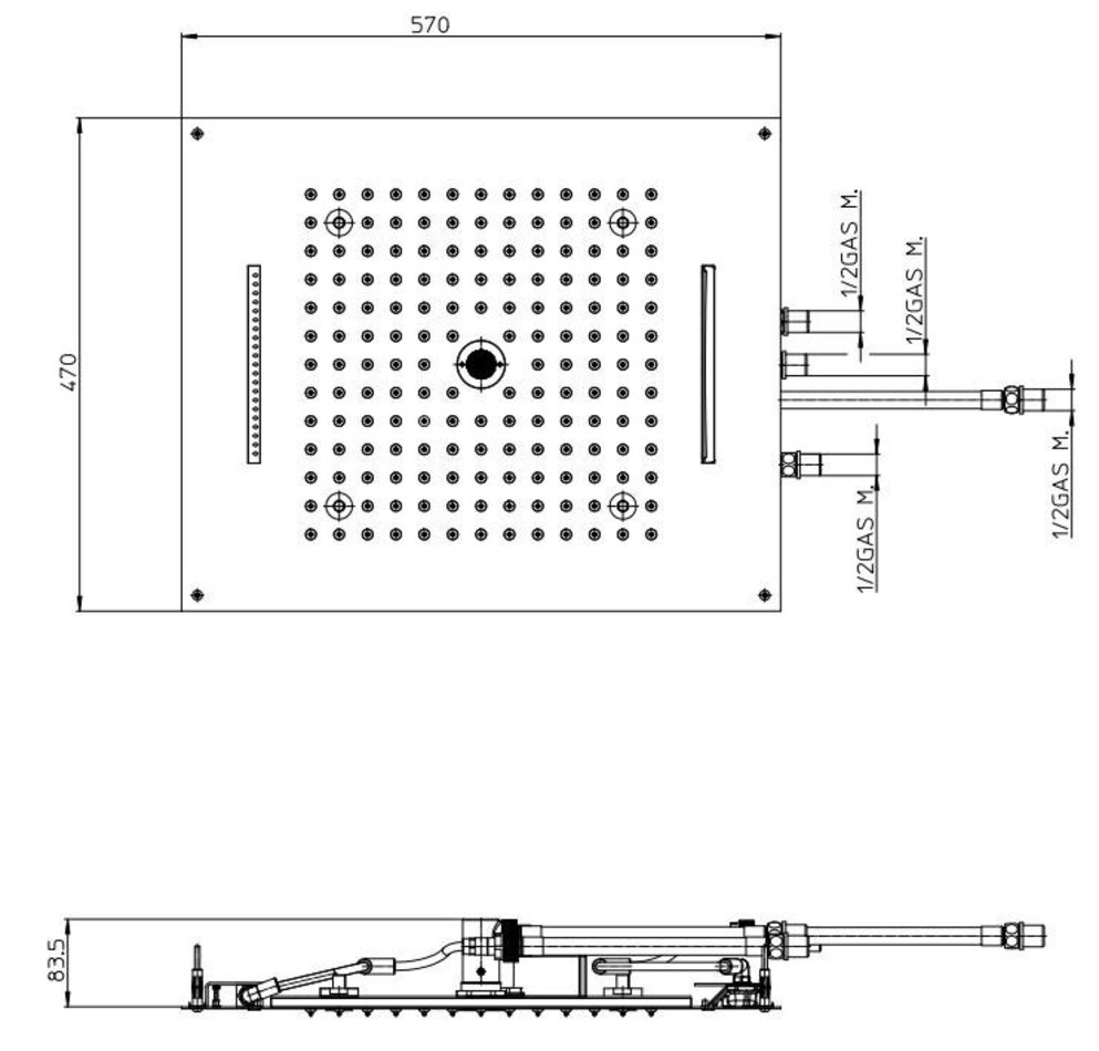 - BOSSINI (DREAM/4 CROMOTHERAPY) Верхний душ 570x470 мм, 4 светодиода LED RGB, режимы: тропический душ, каскад, каскад гребень, душ туман, для установки в подвесной потолок, хром (030)