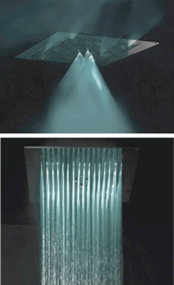 Верхний душ Bossini Dream Neb для подвесного потолка, с гибким шлангом для водоснабжения. Имеет две функции: струя дождевая и распыляющая. При необходимости устанавливается смеситель с переключением на два направления. Размер: 570 х 470 мм.