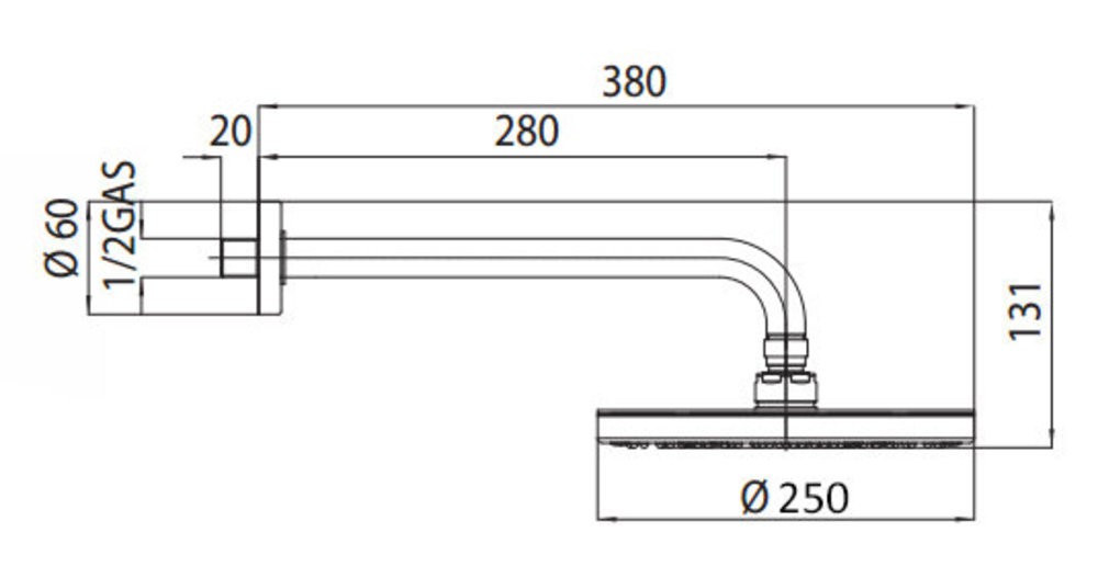 Верхний душ Bossini Elios H19412G.073, 25 см, с держателем, черный матовый