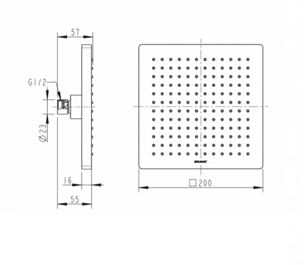 Верхний душ Bravat Built-in P7078C-RUS, квадратный, 20 см, 1 режим струи, без держателя, хром