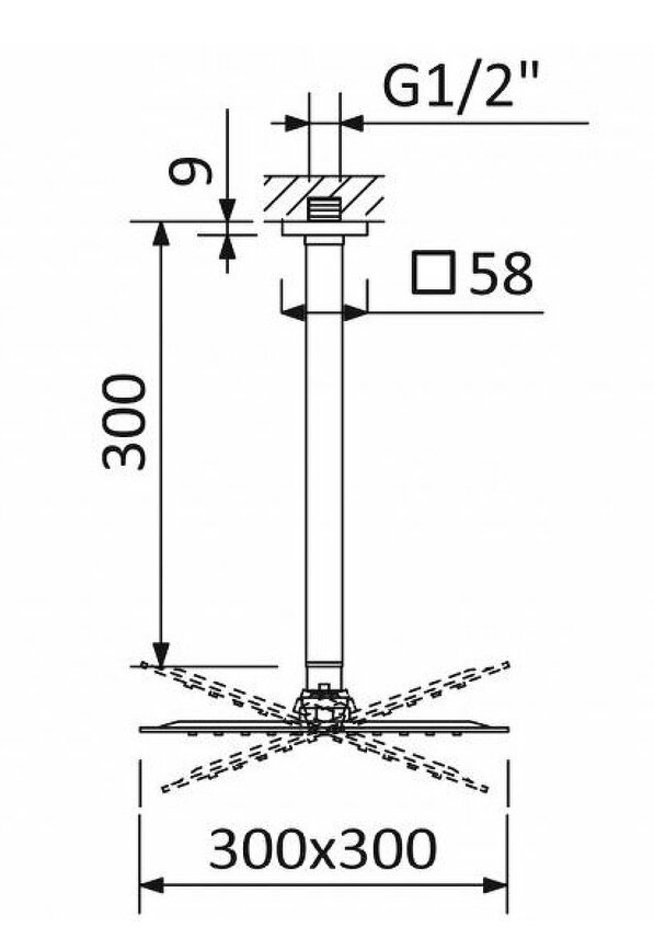 Верхний душ Cezares CZR-B-TDDQ-30/30-01, 30 см, 1 режим, с держателем, хром