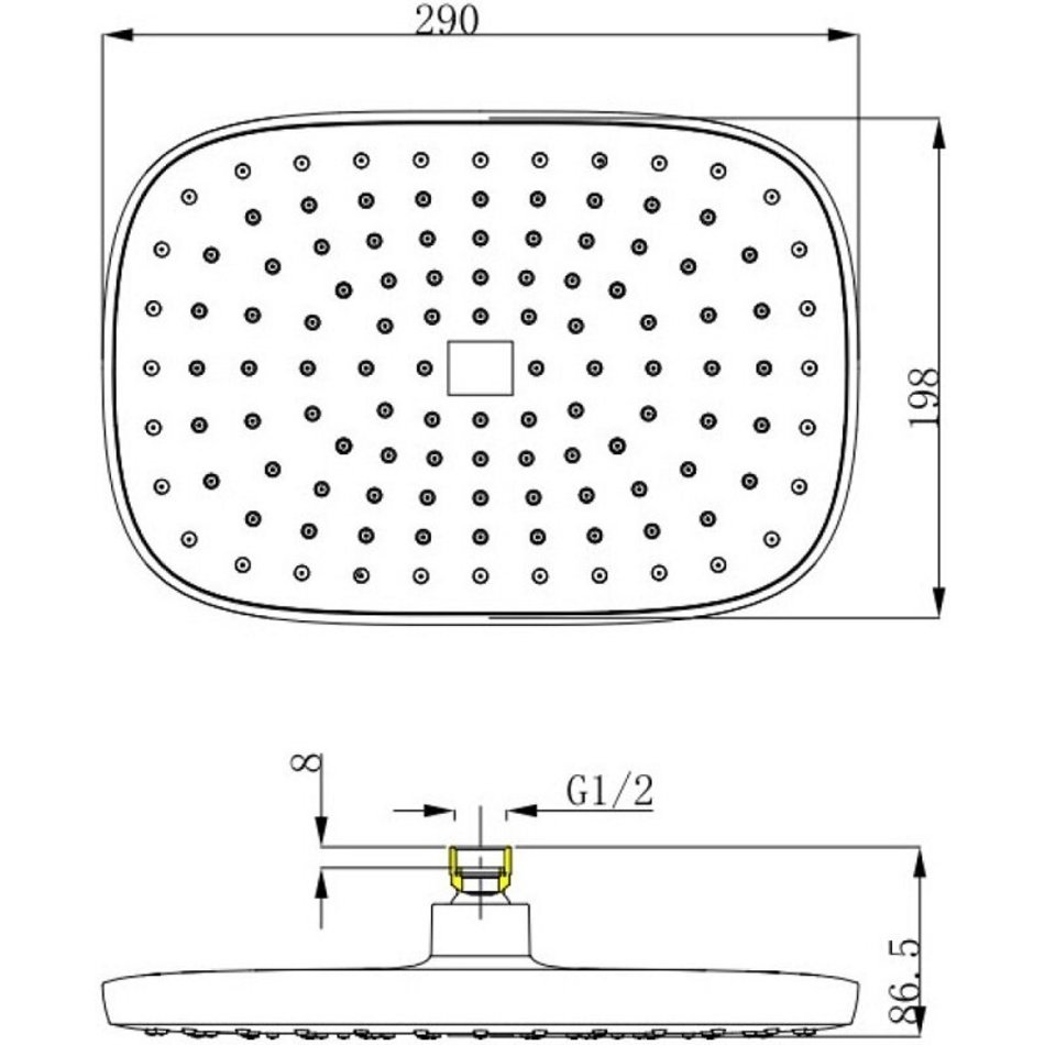 Верхний душ D&K, 29 х 20 см, 1 режим струи, пластик, цвет хром, DC1004863