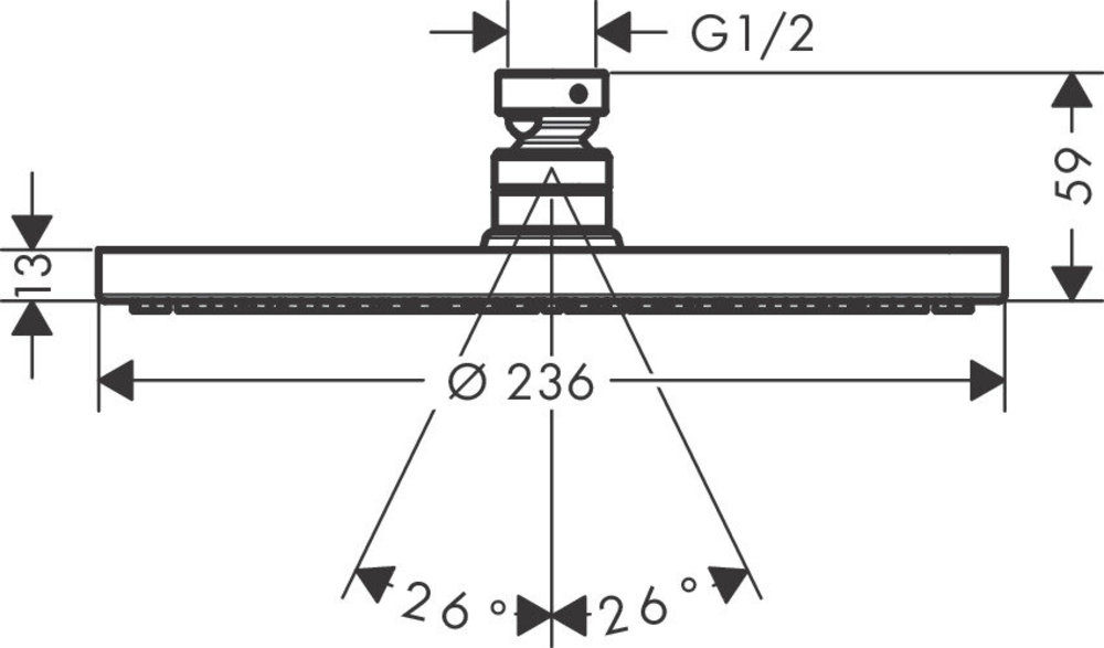 Верхний душ Hansgrohe 27623000 Raindance S, 24 см, 1 режим струи, без держателя