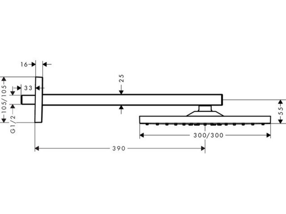 - размер душевого диска: 300 x 300 мм