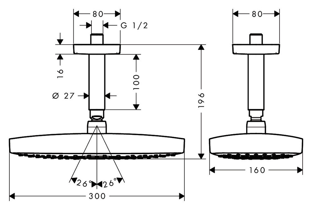 Верхний душ Hansgrohe Raindance Select E 300 2jet с потолочным подсоединением 27384400, белый/хром
